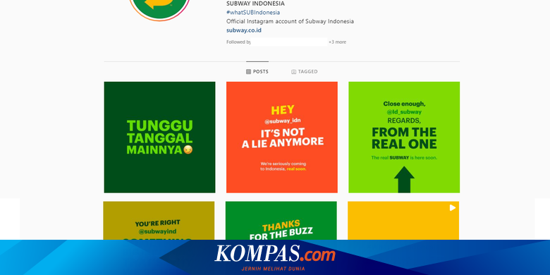 Instagram Subway Indonesia Kebanjiran Follower, "Colek" Akun Prank - Kompas.com - Tekno Kompas.com